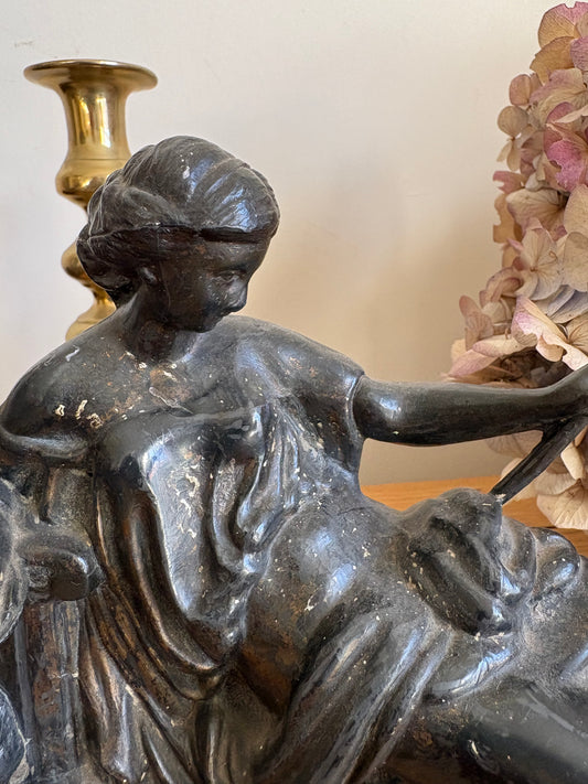 Empire Classical Style Antique Metal Figure Reclining Woman wood base