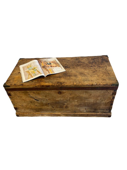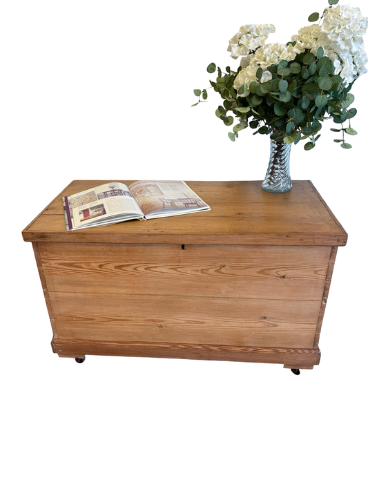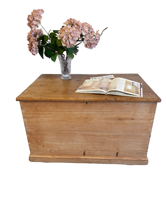 Rustic Victorian stripped pine blanket box / trunk / coffee table / storage chest