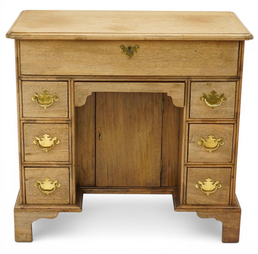 Georgian style kneehole desk in pale mahogany, long drawer, twin pedestal of 3 drawers each & brass handles