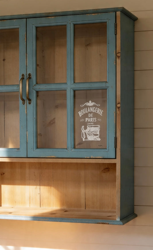 Blue wooden French / vintage styled storage wall shelf Utility unit