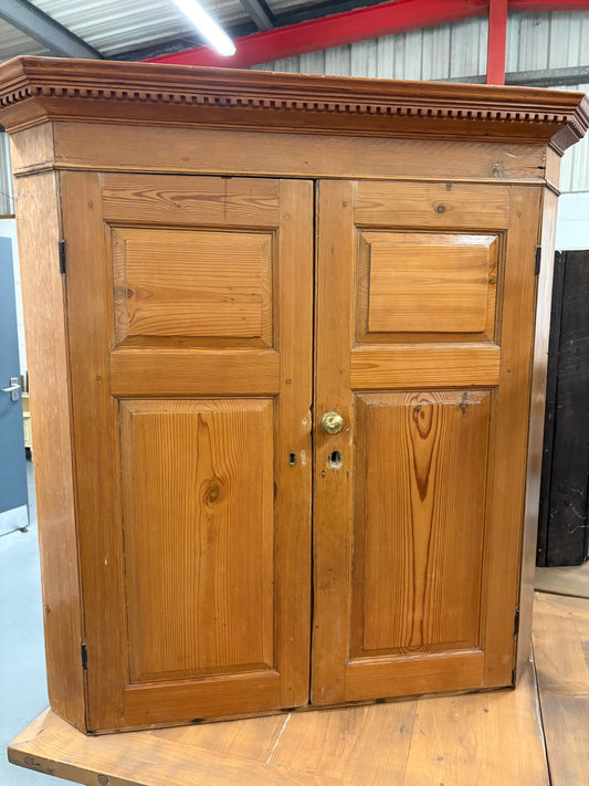 Large Victorian Antique Pine Corner cupboard with shaped shelves Original Brass Pull