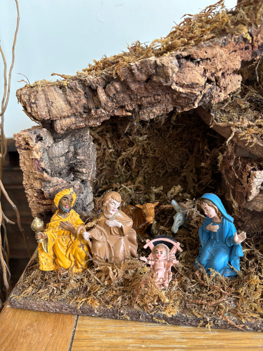 Vintage Italian Cork Traditional Nativity Scene Christmas Decor