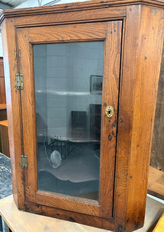 Antique Glazed Corner Wall Unit with Locking key Painted inside