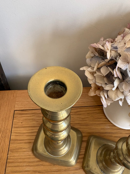 Pair of Traditional Vintage brass candlestick holders