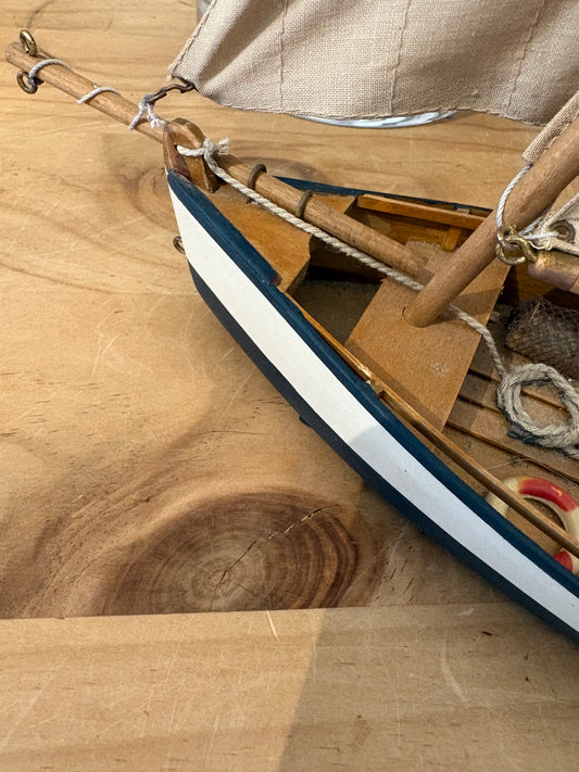 Vintage Wooden Sailing Boat Model Fabric sail Nautical Decor