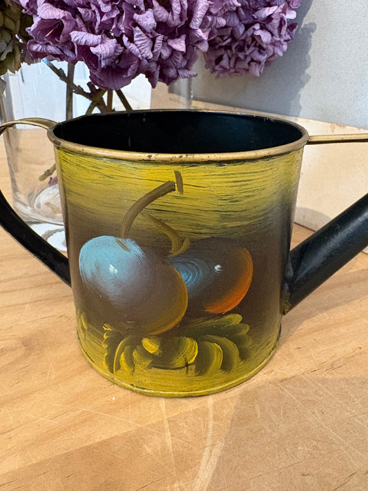 Vintage hand painted fruit design wooden trough faux flowers plants
