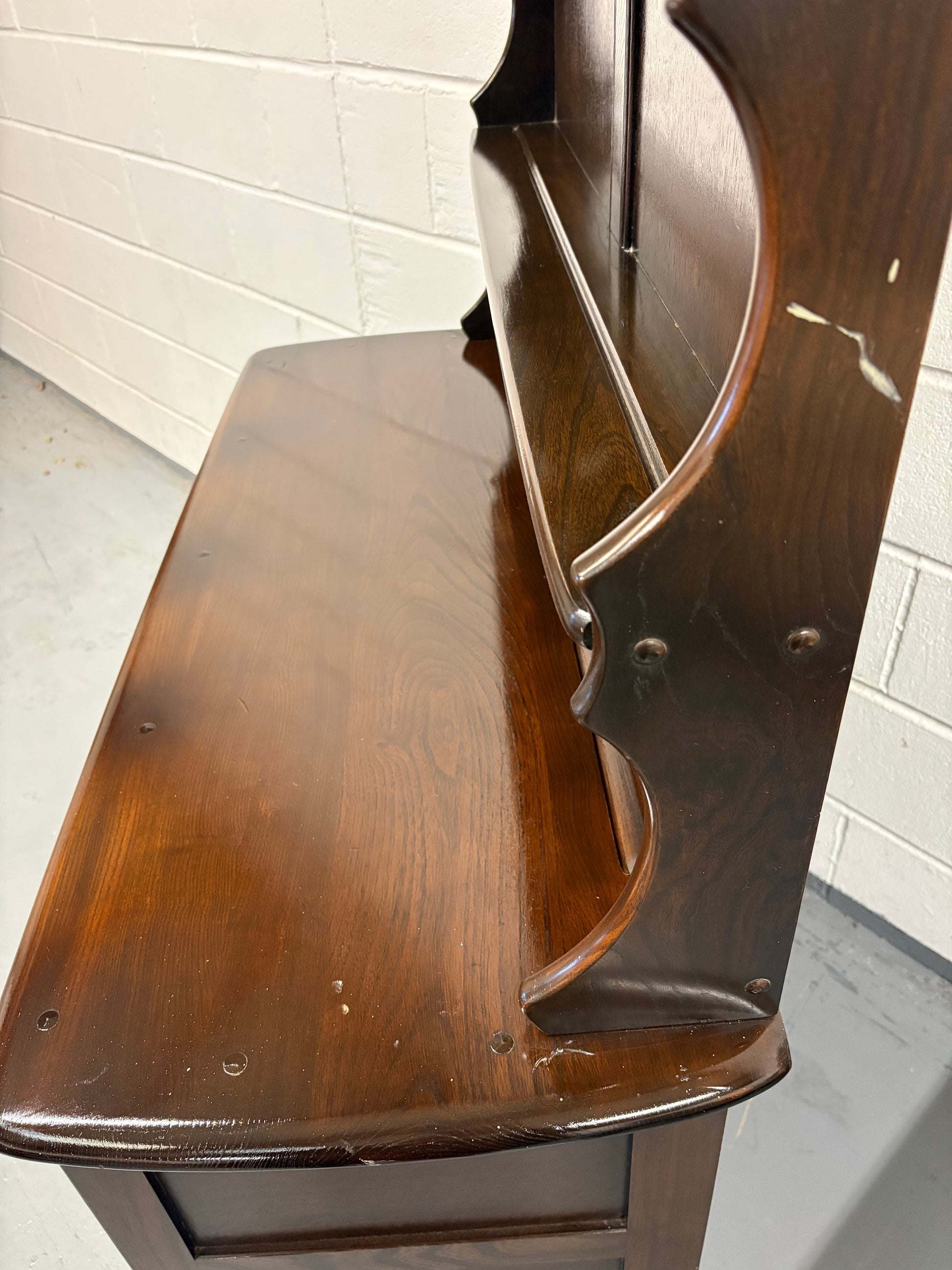 A vintage ERCOL dresser with two drawers over cupboards and the plate rack above.