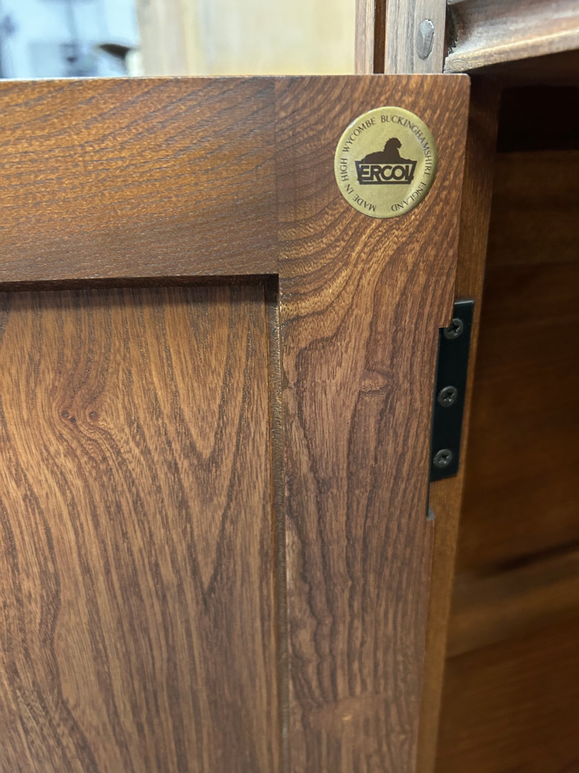 A vintage ERCOL Teak dresser two drawers cupboards plate rack kitchen storage