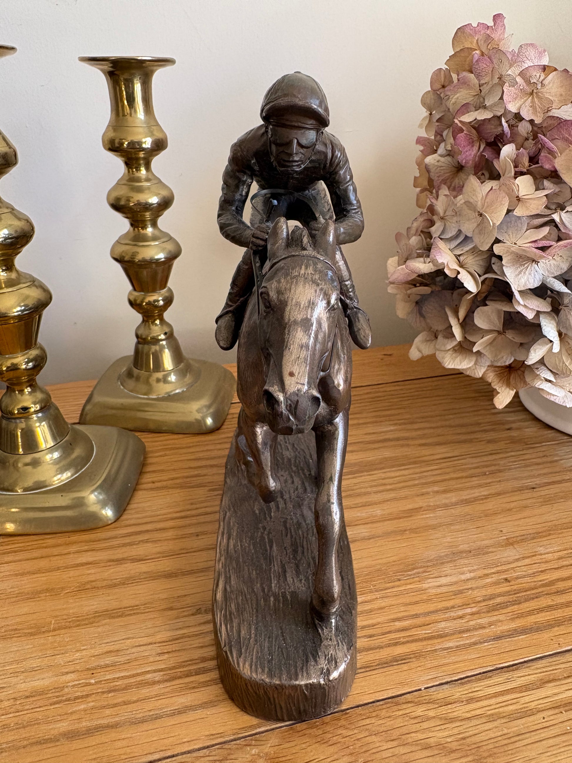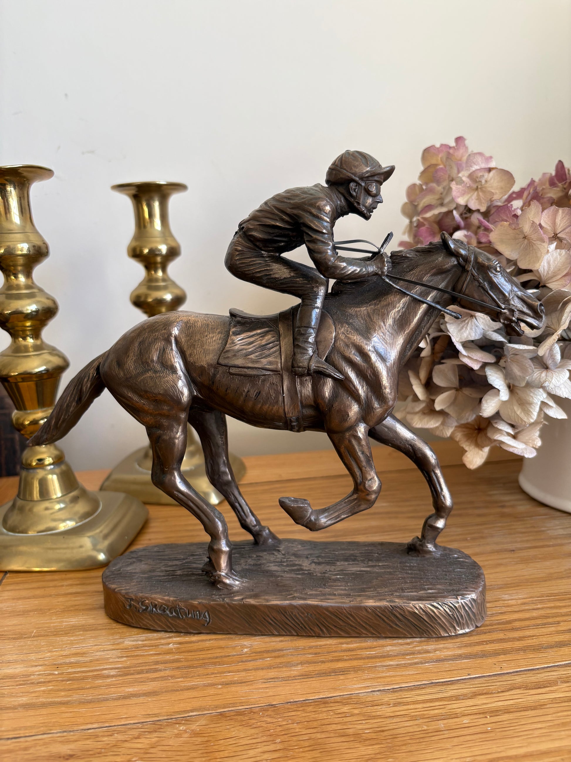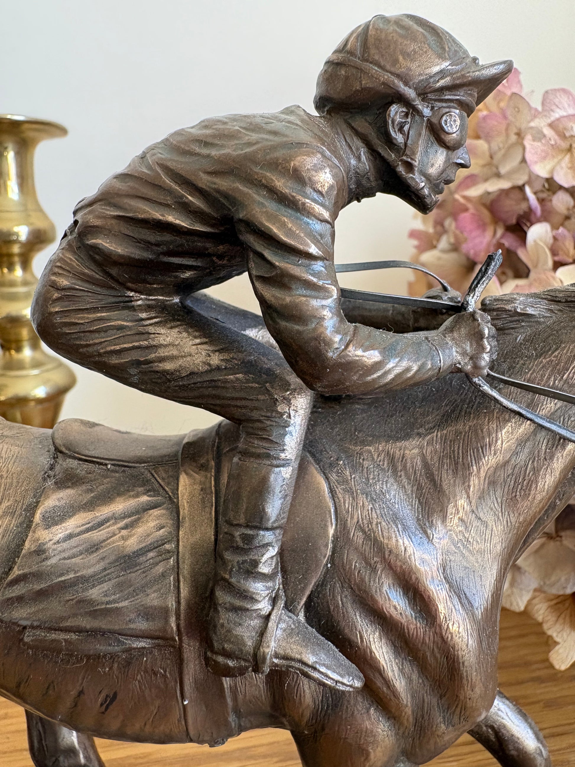 Horse and Jockey Resin Bronzed Figure by J Skeating Equine Racing