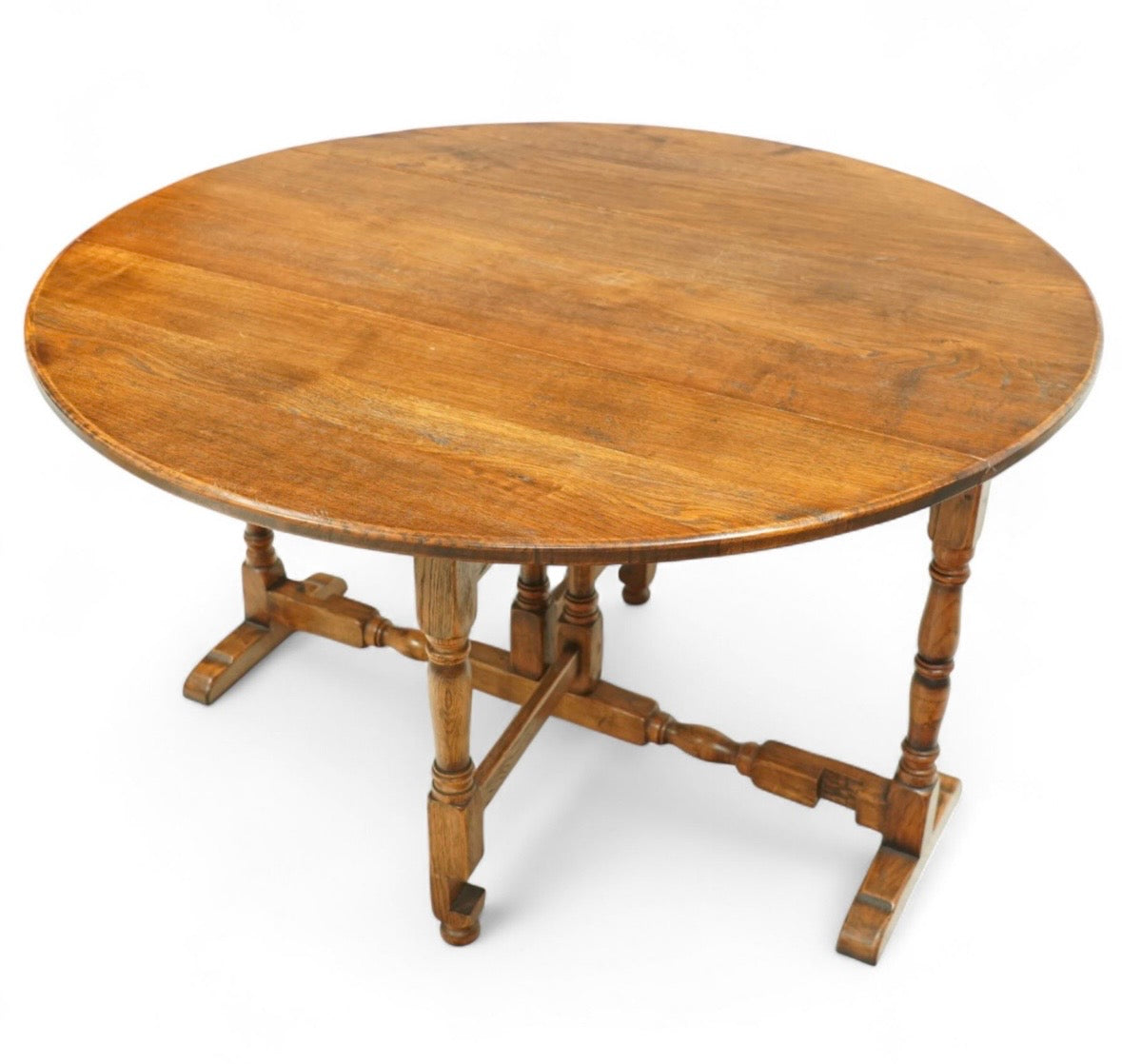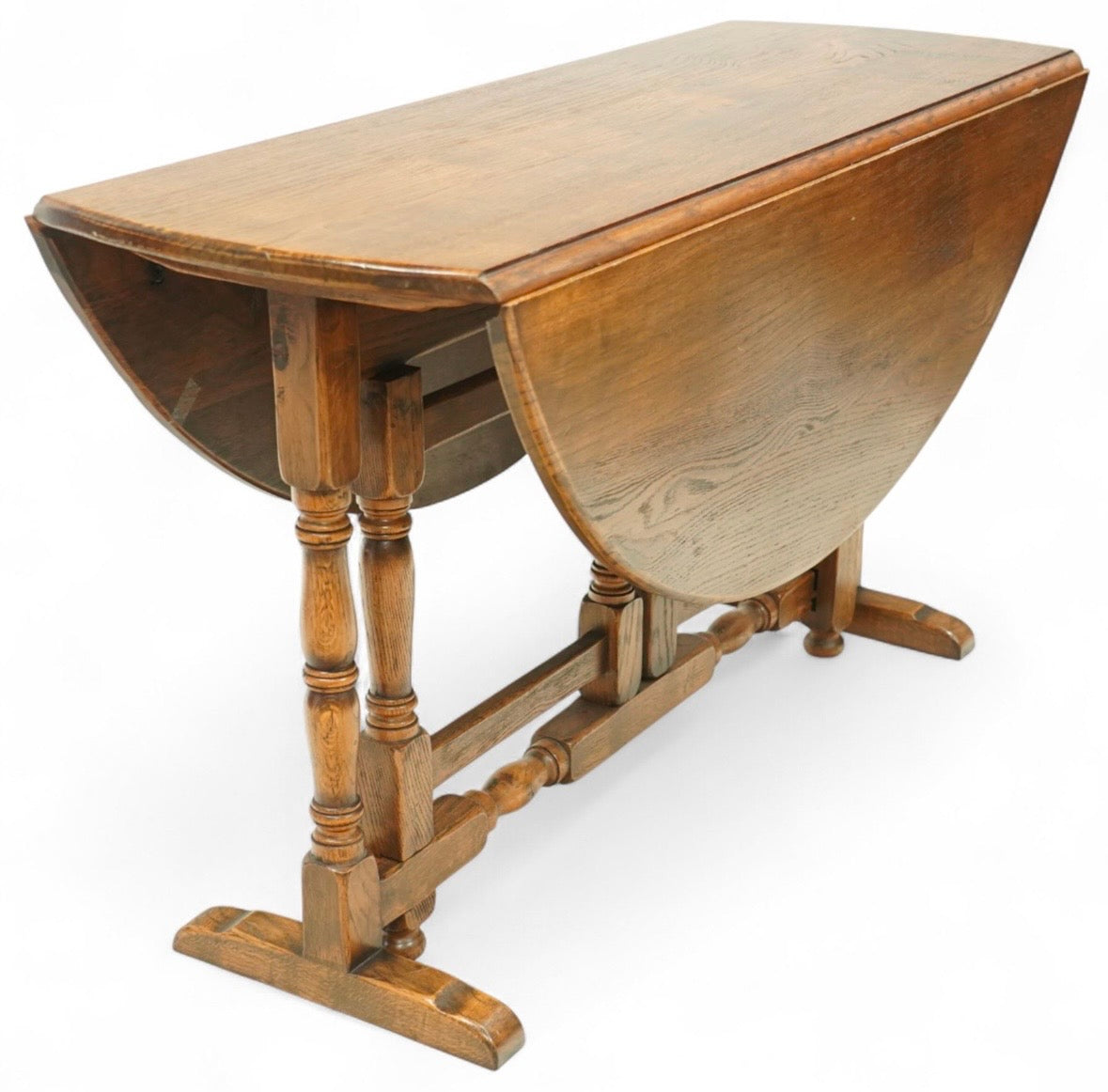 Early 20th century oak gate-leg Dining table - oval top on twin gate turned legs