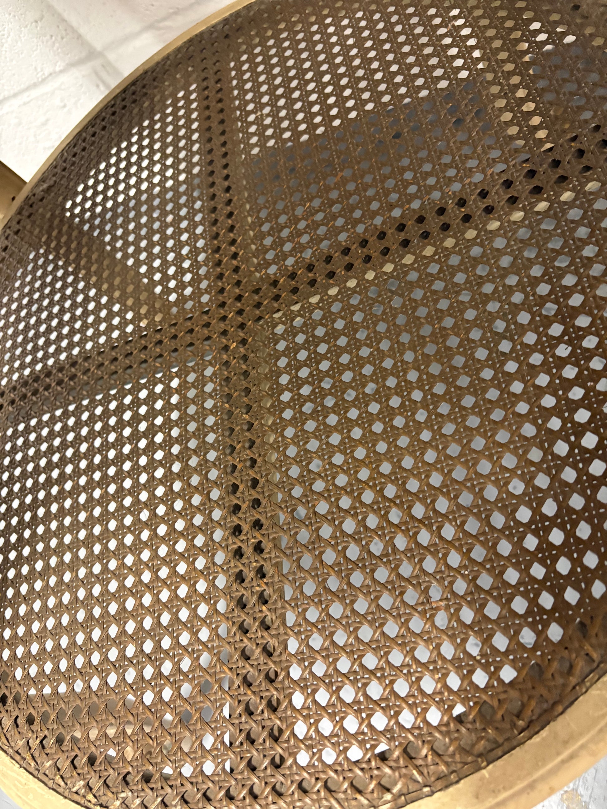 Vintage French Louis XVI round marble top table Cream Gold with Rattan undershelf