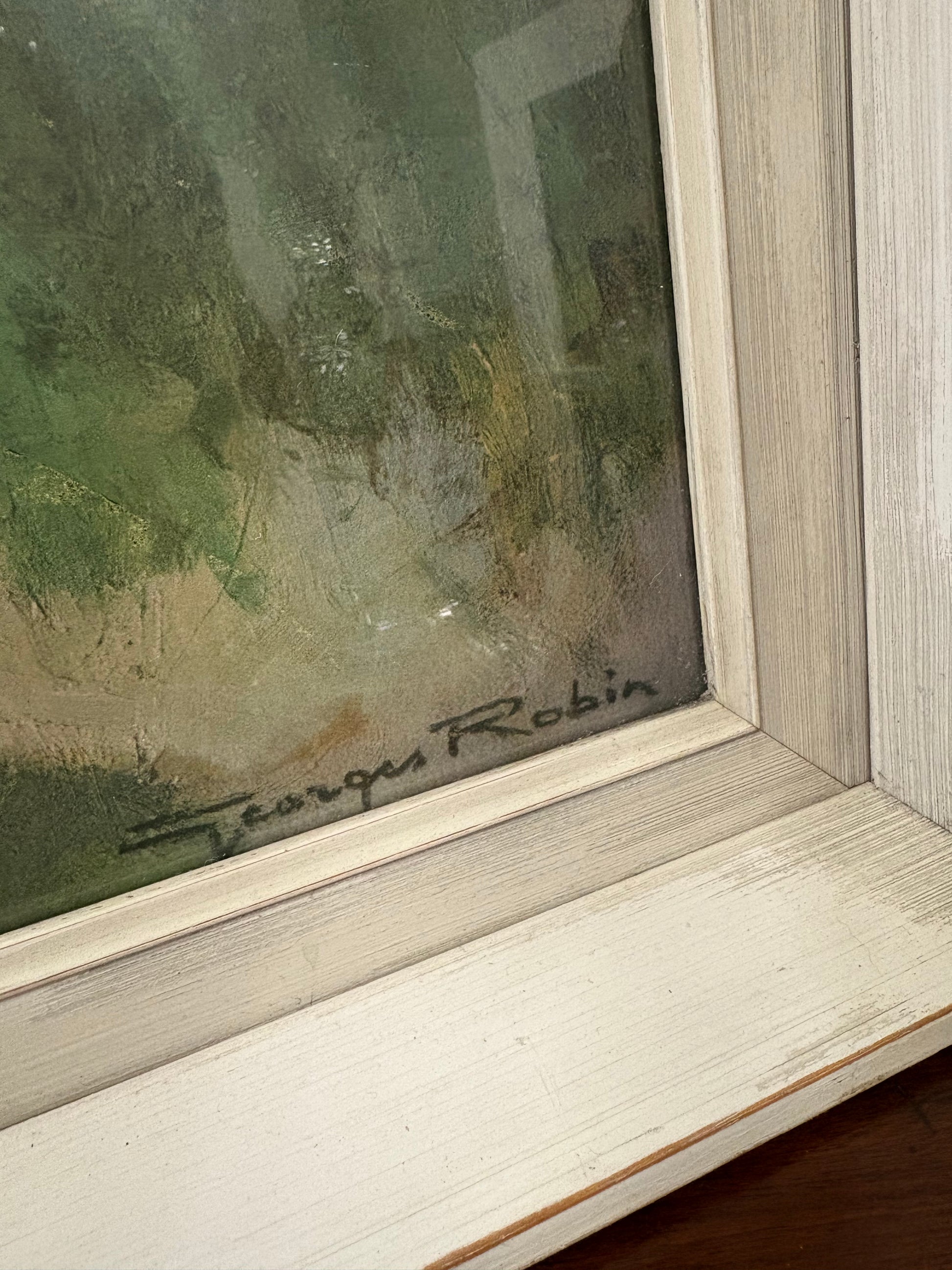 This is a very large framed and glazed Vintage print of a river landscape scene by George Robin . It’s dated from around the 1950’s.