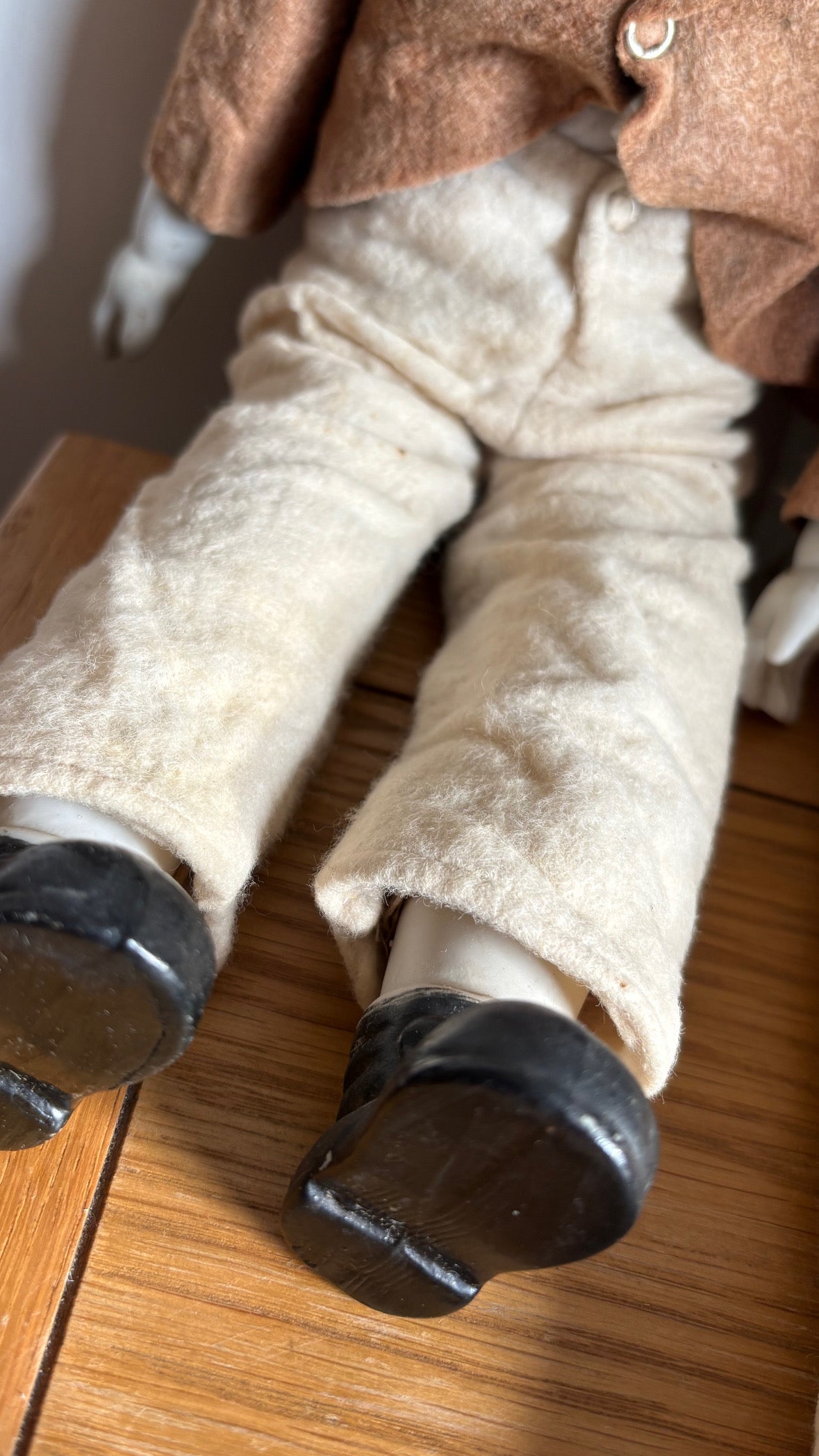 Laurel and Hardy bisque head hands and feet dolls with original clothing on. The clothing has faded but the actual fabric itself the bodies the porcelain everything else is in good condition.