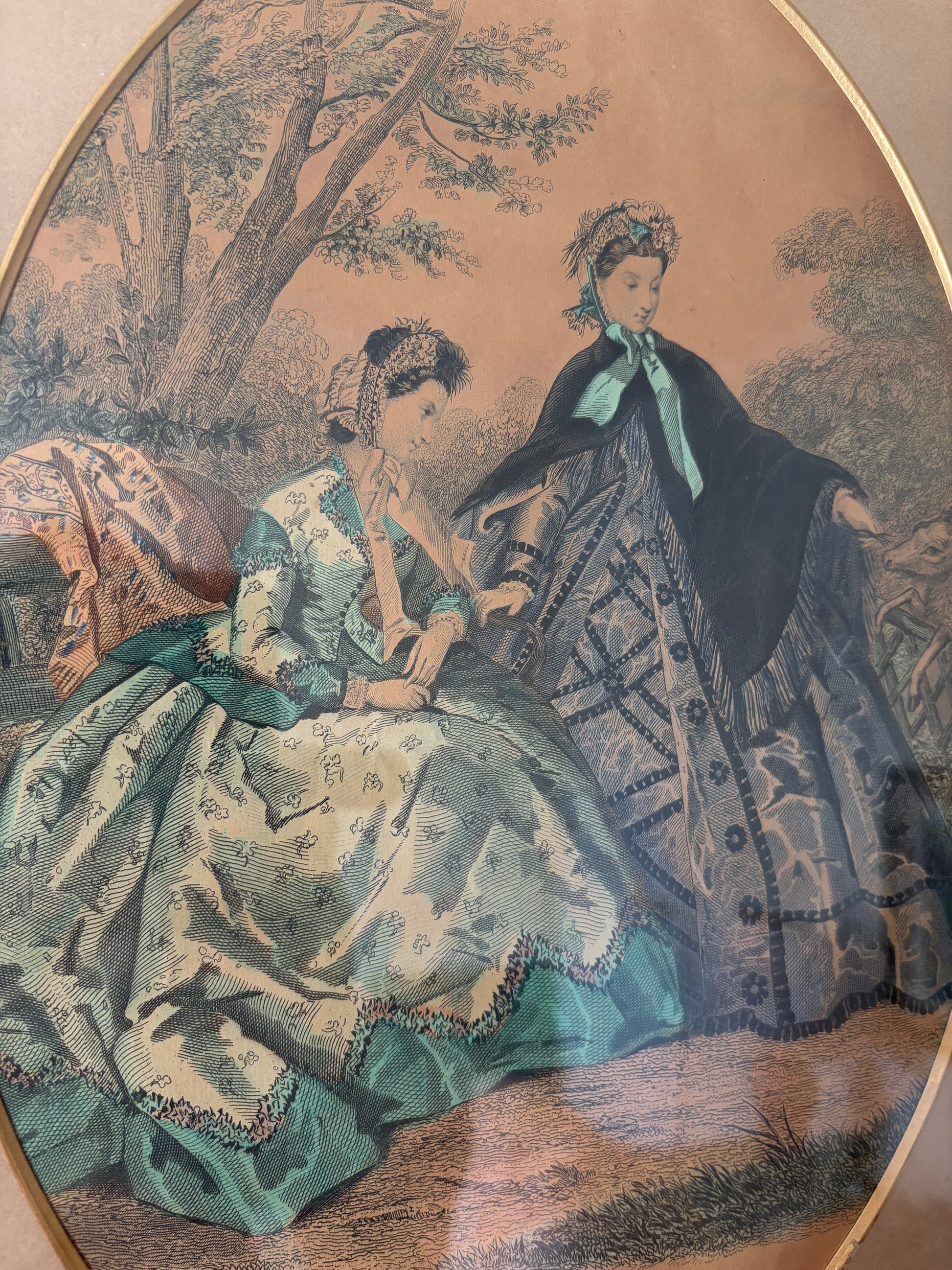 Lovely old oval framed fashion print.
